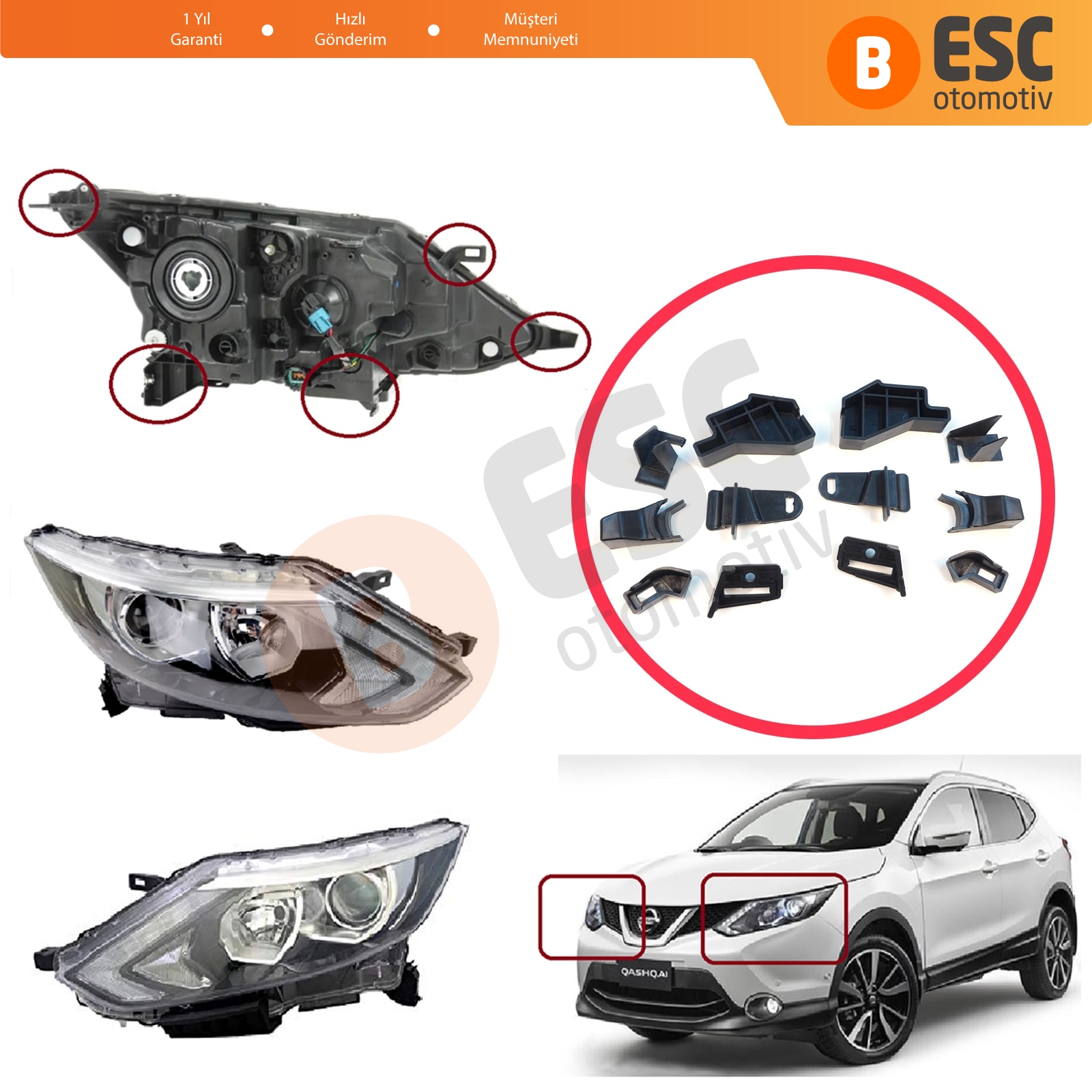 Nissan Qashqai MK2 J11 2013-2021 260604EH0A 260104EH0A İçin Sağ Sol Ön Far Ayak Tamir Seti