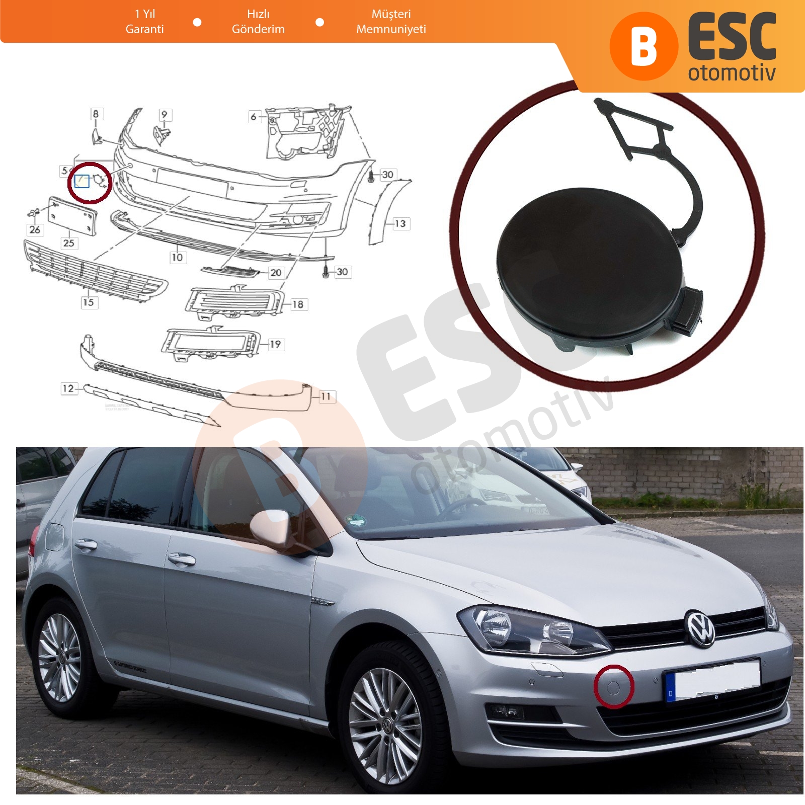 VW Golf MK7 için Ön Tampon Çeki Demiri Kapağı BOYASIZ-ASTARLI 5GG807241